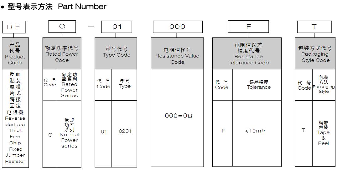 風(fēng)華高科反面貼裝厚膜片式跨接固定電阻器型號命名規(guī)則: