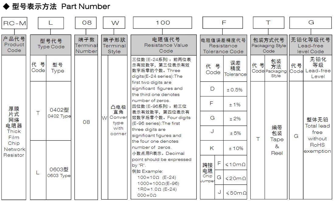 風華高科無鉛厚膜片式網絡電阻器型號命名規則: