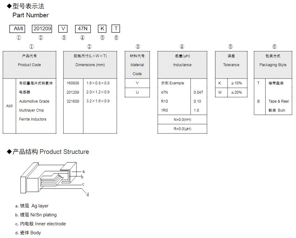 風華高科車規疊層片式鐵氧體電感器命名規則: