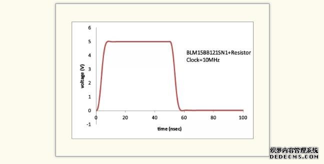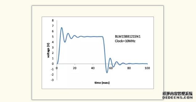 如果在數字電路中使用鐵氧體磁珠,則可能會發生波形中出現過沖和下沖的情況。(圖2)