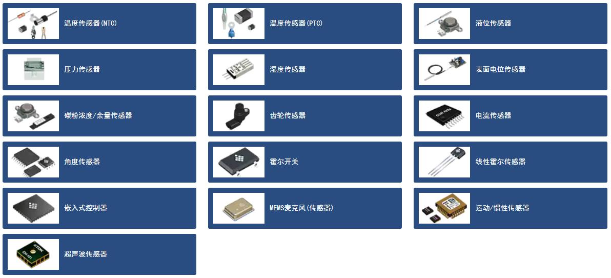 TDK公司的完整系列傳感器以TDK、EPCOS、InvenSense、Micronas和Tronics等產品品牌銷售,包括溫度傳感器、壓力傳感器、角度傳感器、電流傳感器。 精確的電流傳感器是電動汽車的智能電源和智能電網不可缺少的。例如,溫度傳感器和傳感器系統被用來調節冰箱和空調系統的溫度,或者測量電動汽車工作液的溫度。壓力傳感器廣泛應用于汽車、工業電子、醫療工程和環境技術等用途。基于霍爾傳感器或TMR技術的磁場傳感器幾乎可以在任何需要測量位置、直線或旋轉運動、甚至電流的機器上找到。 基于運動的設備在三維空間內檢測和跟蹤物體的運動,從而使許多消費電子設備(包括移動電子設備、可穿戴電子設備、智能家居電子設備、汽車和工業電子設備)具有關鍵功能。對于運動傳感的高性能要求,TDK提供MEMS產品,如用于導航、運動跟蹤和運動控制以及光學穩定的加速度計和陀螺儀。