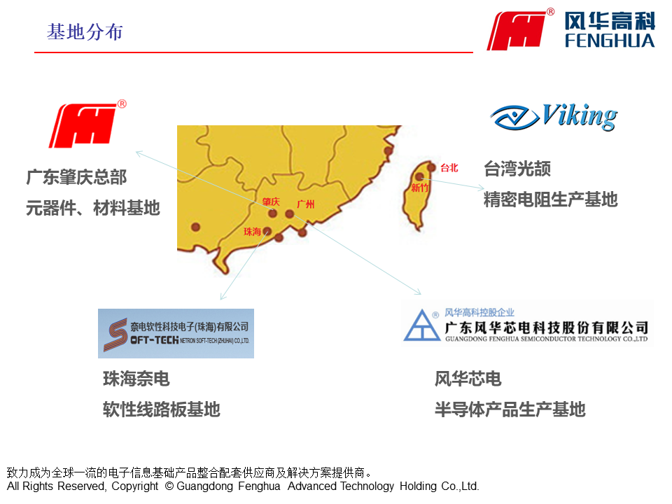 廣東風華高新科技股份有限公司(證券簡稱風華高科,證券代碼000636)成立于1984年,是一家專業從事高端新型元器件、電子材料、電子專用設備等電子信息基礎產品的高新技術企業,1996年在深圳證券交易所掛牌上市。風華高科自進入電子元器件行業以來,實現了跨越式的發展,現已成為國內最大的新型元器件及電子信息基礎產品科研、生產和出口基地,擁有自主知識產權及核心產品關鍵技術的國際知名新型電子元器件行業大公司。